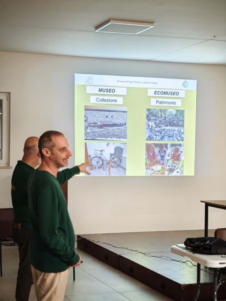 Antonio Saccoccio, Coordinatore tecnico-scientifico dell’Ecomuseo, ha illustrato le caratteristiche generali degli ecomusei e in particolare dell’Ecomuseo dell’Agro Pontino e ha raccontato alcuni progetti portati avanti negli ultimi anni dalle varie antenne ecomuseali. Bruno Fontanarosa, responsabile del Patto di collaborazione Gli alberi di Nascosa e referente locale dell’Ecomuseo, ha focalizzato l’attenzione sui problemi ambientali e su alcuni aspetti di valorizzazione del patrimonio ambientale nei quartieri Nuova Latina e Nascosa.