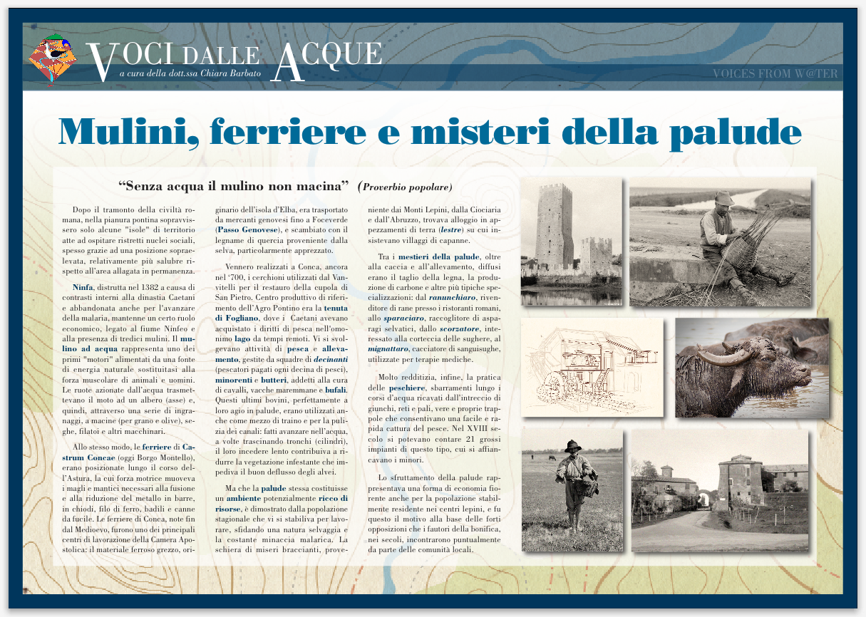 L’Ecomuseo dell’Agro Pontino parteciperà alla Fiera degli Ecomusei di Argenta (6-9 settembre 2013) con la mostra itinerante intitolata “Voci dalle acque”.