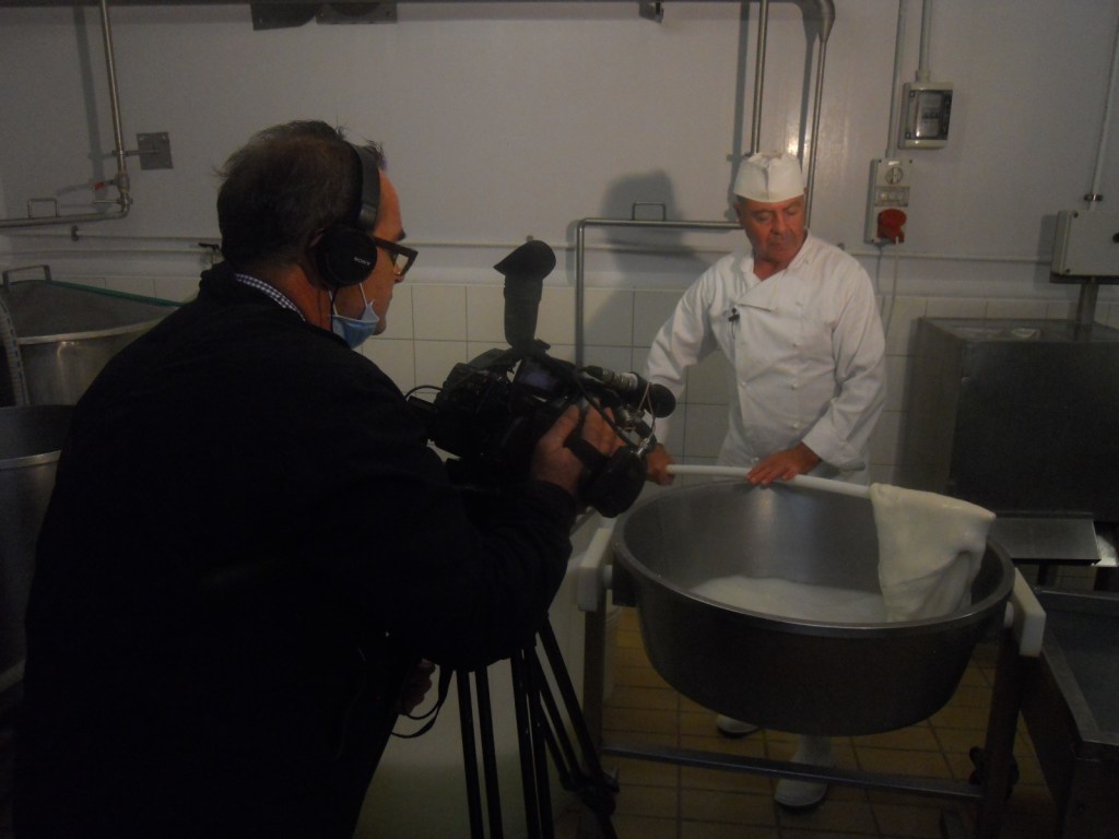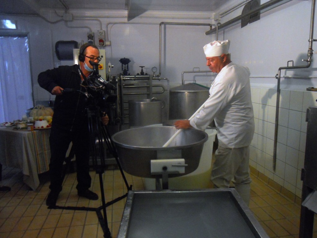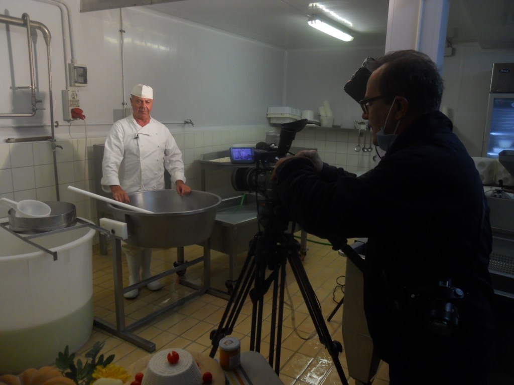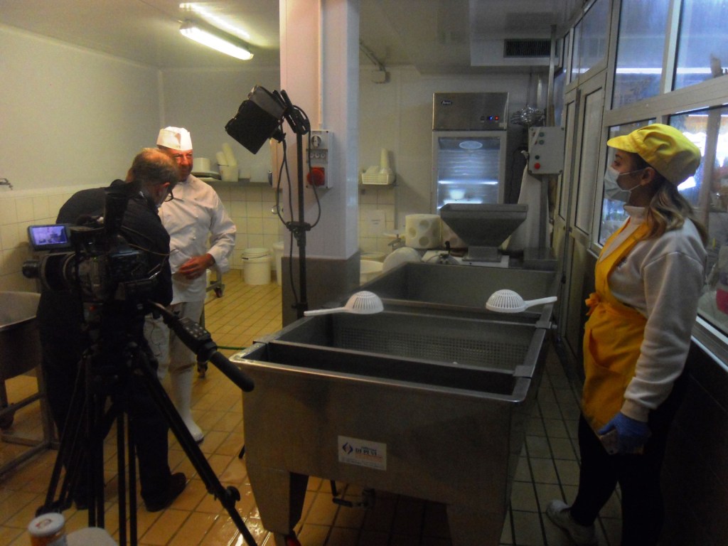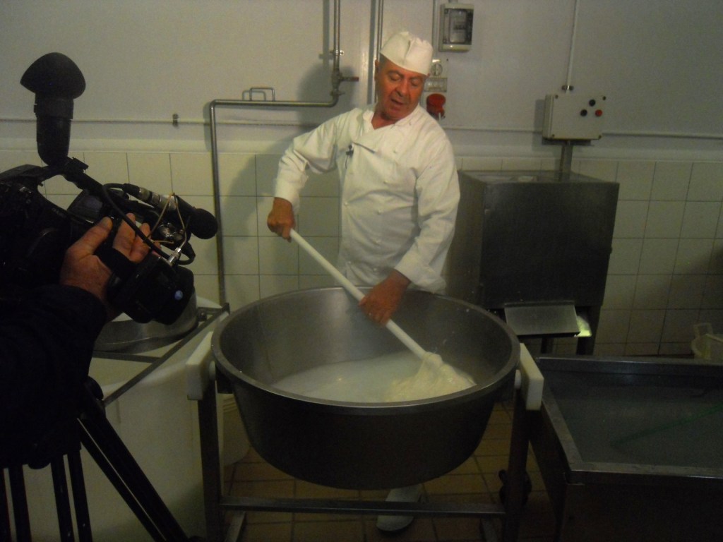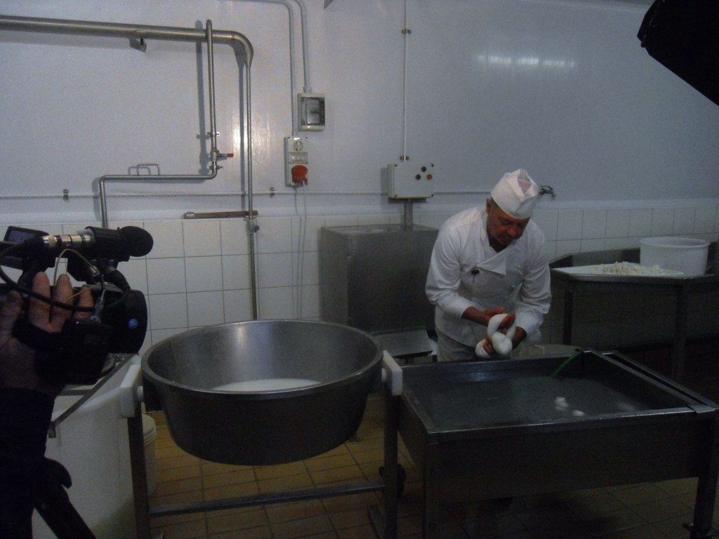 Qualche scatto effettuato durante le riprese presso il Caseificio Feudo. Antonio Ventre, casaro da oltre cinquant’anni, è stato immortalato nel momento della filatura della cagliata. In pochi minuti dalla cagliata triturata vengono fuori decine di nodini, trecce, mozzarelle, scamorze di bufala.