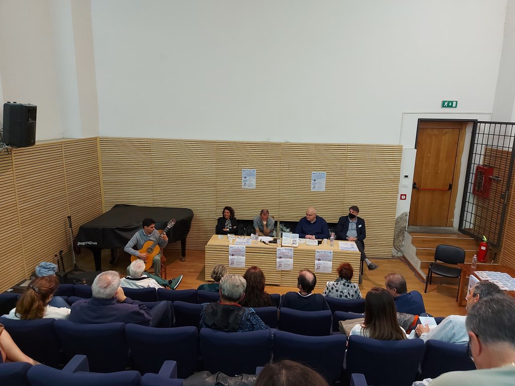 Qualche momento tratto dalla presentazione del “Piccolo trattato di pediatria poetica” di Dante Ceccarini, presso l’auditorium comunale di Bassiano (2 ottobre 2021). Sono intervenuti, oltre all’autore, Domenico Guidi (sindaco del comune di Bassiano), Giovanna Coluzzi (vicesindaco e assessore alla cultura di Bassiano), Mauro Nasi (editore Sintagma), Antonio Saccoccio, (dottore di ricerca in italianistica e coordinatore tecnico-scientifico dell’Ecomuseo dell’Agro Pontino), Reginaldo Falconi (chitarrista), Amalia Avvisati (attrice).