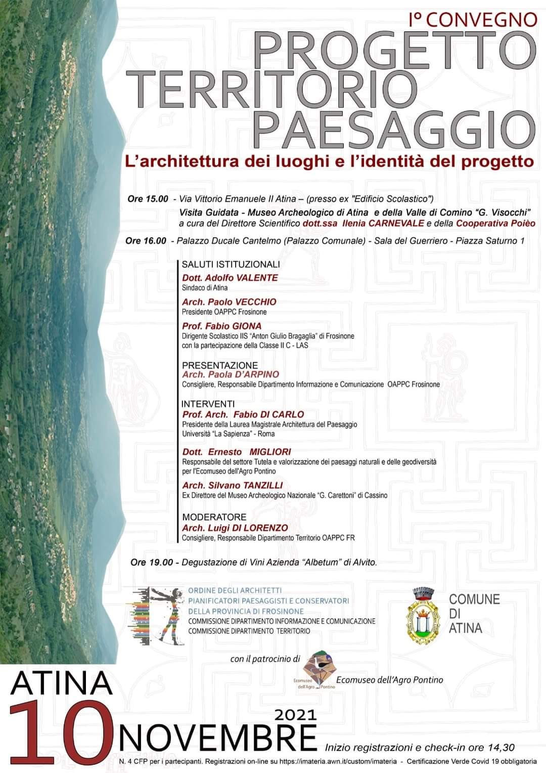 Il 10 novembre 2021 importante convegno sull’architettura del paesaggio ad Atina. Tra i relatori ci sarà Ernesto Migliori, responsabile del settore Tutela e valorizzazione dei paesaggi naturali e della geodiversità per l’Ecomuseo dell’Agro Pontino.
