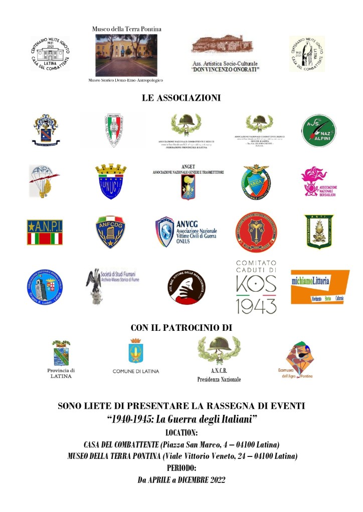 - “La partecipazione degli abitanti e la valorizzazione del patrimonio territoriale per lo sviluppo locale” (13 marzo 2024, Sala Conferenze del Museo della Terra Pontina di Latina) 9 marzo 2024