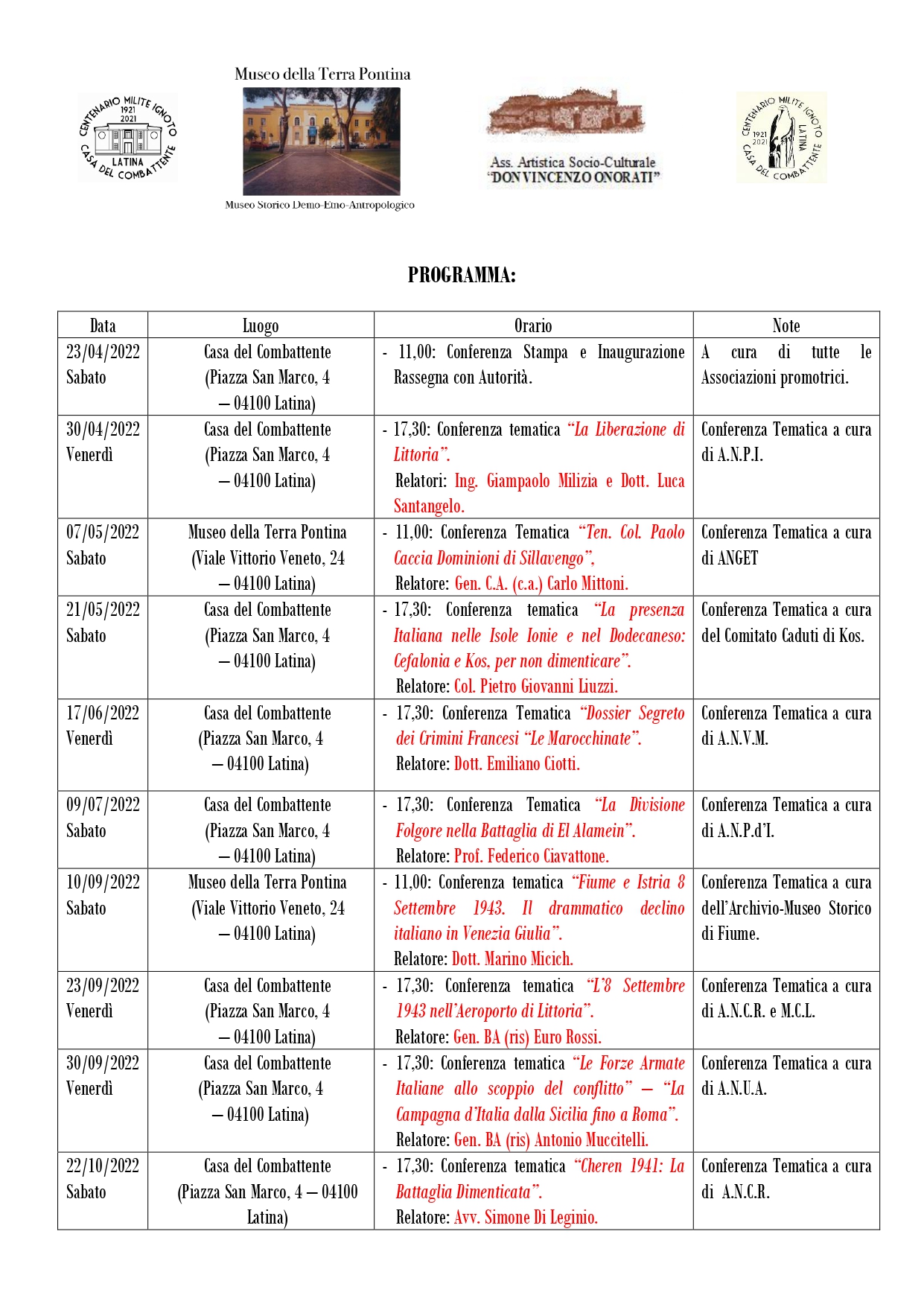 - Sesta Giornata di Studi sulla Triplice Cinta (Sonnino, 14 agosto 2022) 9 agosto 2022