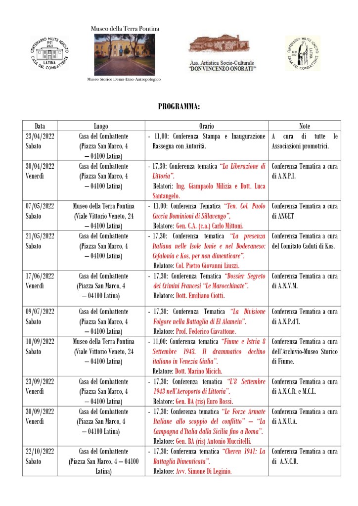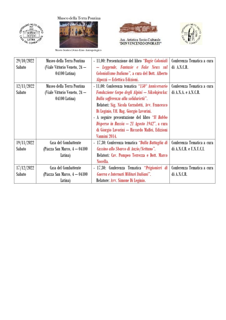 - Sonnino, Museo Terre di Confine: presentazione del libro “Polvere d’Africa” di Marco Novati 21 settembre 2022