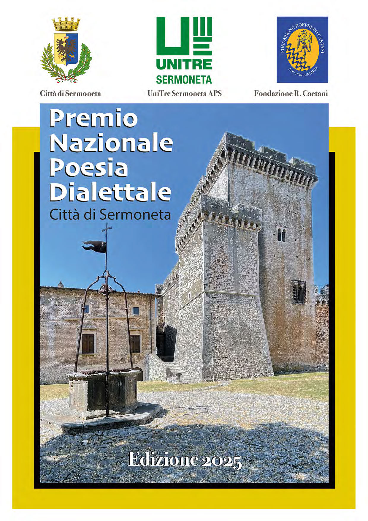 L’Unitre Sermoneta (Università delle tre età) “Marguerite Chapin Caetani” e il Comune di Sermoneta, d’intesa con la fondazione Roffredo Caetani di Sermoneta, con il patrocinio richiesto al Ministero della Cultura (MIC), alla Regione Lazio, alla Provincia di Latina e all’Unesco, e in collaborazione con L’Archeoclub di Sermoneta, la Pro Loco Sermoneta APS, l’Ecomuseo dell’Agro Pontino, l’Associazione Festeggiamenti Centro Storico Sermoneta, la Compagnia Teatrale Dritto & Rovescio e l’Associazione Sbandieratori Ducato Caetani di Sermoneta hanno indetto il I Premio Nazionale di Poesia Dialettale “Città di Sermoneta” 2025.