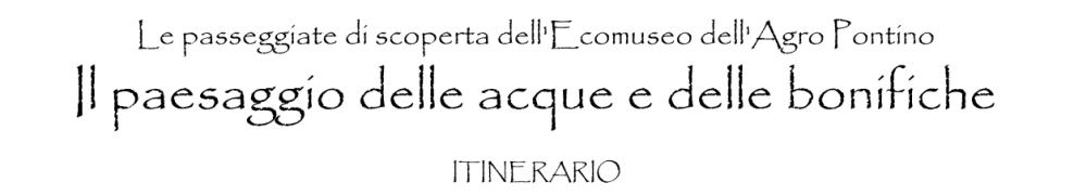 Itinerario: Abbazia di Valvisciolo, Canale Mussolini, Via Appia, Casal delle Palme, Tor Tre Ponti, Parco Susetta Guerrini – Fosso Paoloni, Idrovoro di Capoportiere, Lago di Fogliano.