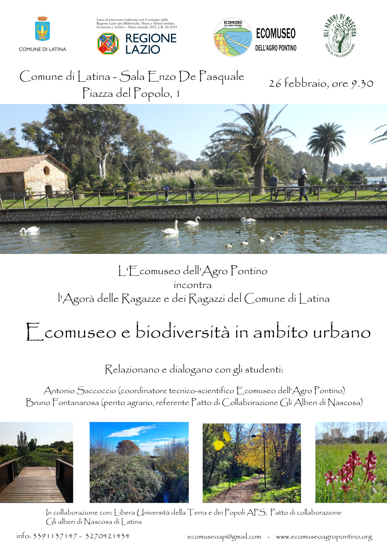 Oggi a Latina presentazione dell’Ecomuseo dell’Agro Pontino in Sala Enzo De Pasquale, con l’Agorà delle Ragazze e dei Ragazzi del Comune di Latina. In collaborazione con il Patto di collaborazione Gli alberi di Nascosa.