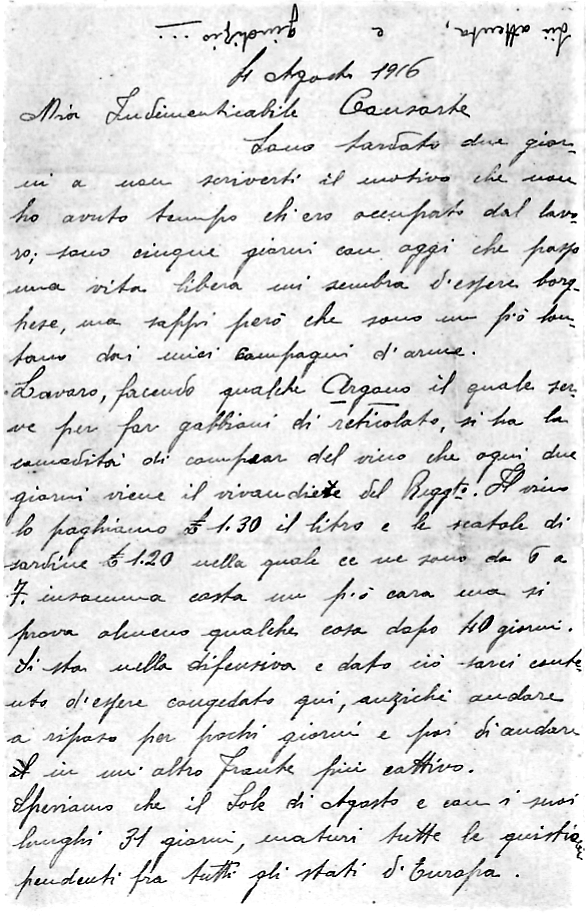 (M.P.) Ha utilizzato il termine appropriato: scattare! È proprio avvenuto come lo scatto di una molla quando ho “scoperto”, sul finire del 2014, una dozzina di lettere che mio padre custodiva, scritte da suo padre Antonio – mio nonno quindi – dalla “zona di guerra” nel periodo che va dal 7 aprile 1916 al 16 ottobre 1917. Lettere contenenti non solo gli usuali saluti o le notizie sulle proprie condizioni di salute ma una diretta cronaca delle condizioni di allora, delle speranze riposte alle notizie su conferenze di pace e dello sconforto per le drammatiche vicende della guerra, degli ideali socialisti che emergono nonostante siano in qualche modo necessariamente camuffati per non incorrere nelle sanzioni della censura militare. Di queste lettere, purtroppo poche se si considera che erano l’unico mezzo mediante il quale venivano mantenuti i contatti con i familiari lontani e che un’altra parte – che era custodita dalla sorella di mio padre – è stata distrutta, stupiscono la ricchezza dei contenuti, le capacità espressive e la bellezza della calligrafia. Caratteristiche che possono meravigliare se si considera che appartengono ad un “pastore”, questa la professione dichiarata da Antonio, la cui cultura scolastica era limitata dalle condizioni dell’epoca ma anelante, per sé e per la propria Comunità, alla conquista di uno status migliore. Aver rinvenuto documenti attestanti che mio nonno Antonio era stato il promotore della costruzione nel 1913 della capanna-scuola nel Quarto di San Donato è stata un’ulteriore scoperta che mi ha emozionato ancor di più, stimolandomi ad ampliare il campo di studio. Mi sono quindi convinto che questo “patrimonio” non poteva rimanere circoscritto alla famiglia ma andava bensì ampliato e condiviso… ed è nato il libro!
