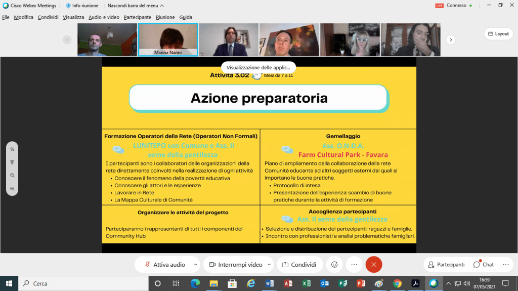 Il 29 aprile è stato presentato, tramite la piattaforma Chairos, il progetto “C’è In-PRONTA” in risposta al bando per le “Comunità Educanti”, gestito dall’impresa sociale Con i Bambini e rivolto a tutti gli enti del terzo settore. L’invito a presentare proposte “esemplari” per sostenere o creare le “comunità educanti” intese come comunità locali di attori (famiglie, scuola, singoli individui, reti sociali, soggetti pubblici e privati) era rivolto a tutte le organizzazioni che, a diverso titolo, hanno la responsabilità nell’educazione e nella cura dei minori che vivono nel proprio territorio e che si trovano, oggi più che mai, in situazioni di povertà educativa.