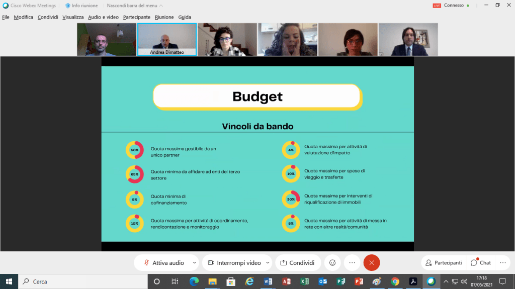 Gli studenti Europrogettisti, in project team, metteranno in evidenza il percorso di co-progettazione partecipata che hanno attuato con i portatori di interesse, articolato in desk check documentale, rilevazione di informazione tramite questionario, 13 riunioni di lavoro bilaterali e un incontro finale di presentazione della proposta progettuale, in plenaria.