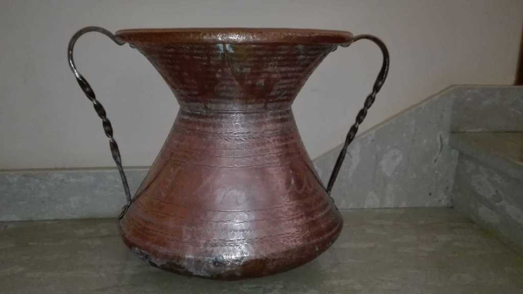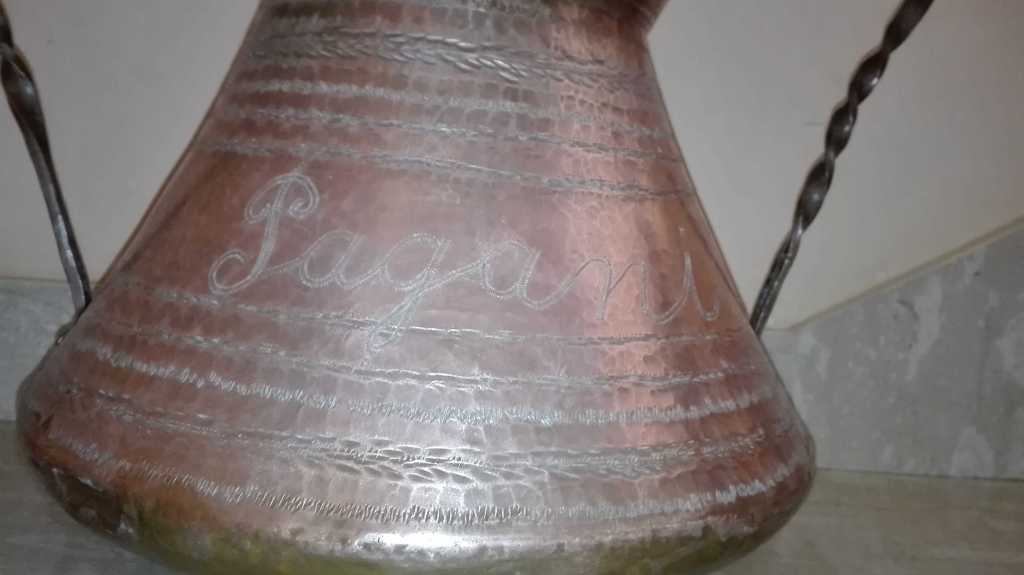 Fino ai primi anni del secondo dopoguerra le abitazioni, soprattutto nei paesi rurali, erano prive di fornitura idrica, dunque era indispensabile recarsi quotidianamente ad attingere acqua dalle fontane dislocate nei vari punti del paese. A svolgere questa essenziale mansione erano le donne che, con un rituale quotidiano, portavano in casa l’acqua necessaria all’uso domestico grazie ad un contenitore, una conca dalla forma particolare e caratteristica chiamata in dialetto corese “jo concóne”. Questo utensile, oramai desueto, è stato quindi un oggetto essenziale nella quotidianità casalinga delle generazioni che ci hanno preceduto. Rigorosamente fatto di rame, ha una forma che ricorda quella di una clessidra tagliata nella parte alta, cioè con una pancia molto ampia della capienza di circa 10 litri, un collo stretto, per non far fuoriuscire l’acqua durante il trasporto, da cui si allarga e si solleva una tesa a forma di scodella la quale permette di raccogliere facilmente l’acqua dal getto scomposto della fontana. Jo concone lepino, e laziale più in generale, è bellissimo perché ha una forma slanciata ed elegante e i manici posti sui lati al centro sono attorcigliati, mentre quello abruzzese è più tarchiato con maniglie semplici.