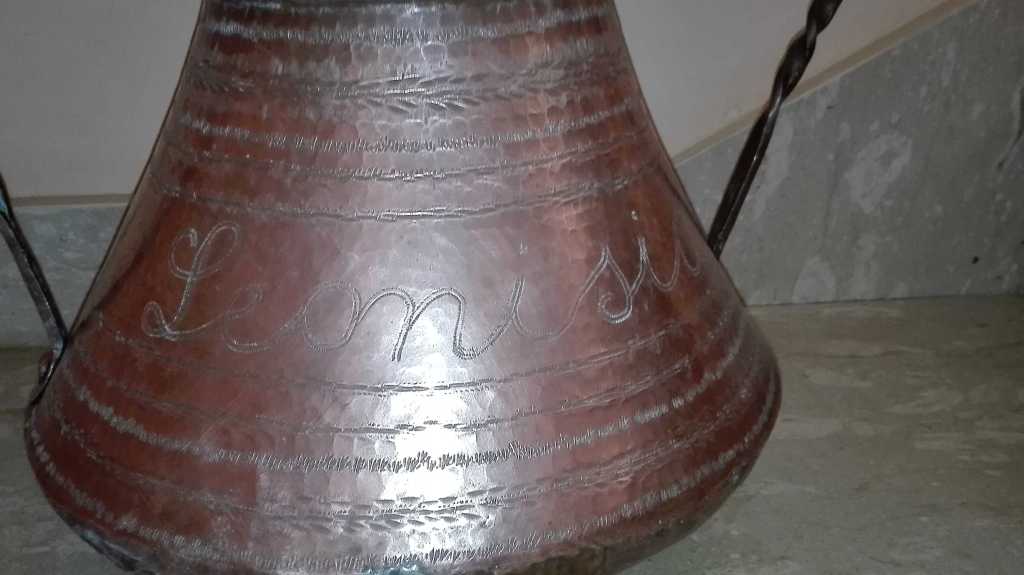 Ora jo concóne ha perso ovviamente la sua principale destinazione d’uso e ne ha acquisita un’altra. Chi, come me, lo possiede ancora perché ereditato da nonne e mamme, lo usa come oggetto decorativo. Il mio fa da porta vaso e l’ho avuto da mia madre che a sua volta lo ha ereditato dalla sua, c’è infatti inciso il nome di mia nonna… LEONISIA (nella foto) ed è il ricordo di un passato sparito, ma non troppo lontano. A volte guardandolo rifletto su quanta acqua avrà trasportato dalla fontana a nasone di via San Nicola, dove mia nonna abitava, e alla grande fatica che anche mia madre, fanciulla negli anni del dopoguerra, ha dovuto fare per assicurare l’acqua per le necessità domestiche di tutta la famiglia. Perciò mi consolo quando vado a pagare la bolletta di AcquaLatina pensando che siano… soldi ben spesi!!
