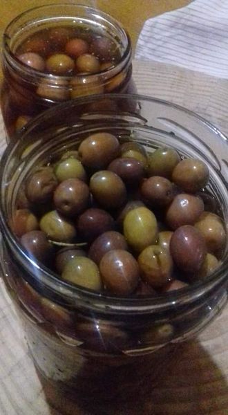 Queste sono le olive in salamoia, qualità Itrana ,”la liva rossa” (l’oliva grande) comunemente chiamata da noi coresi.