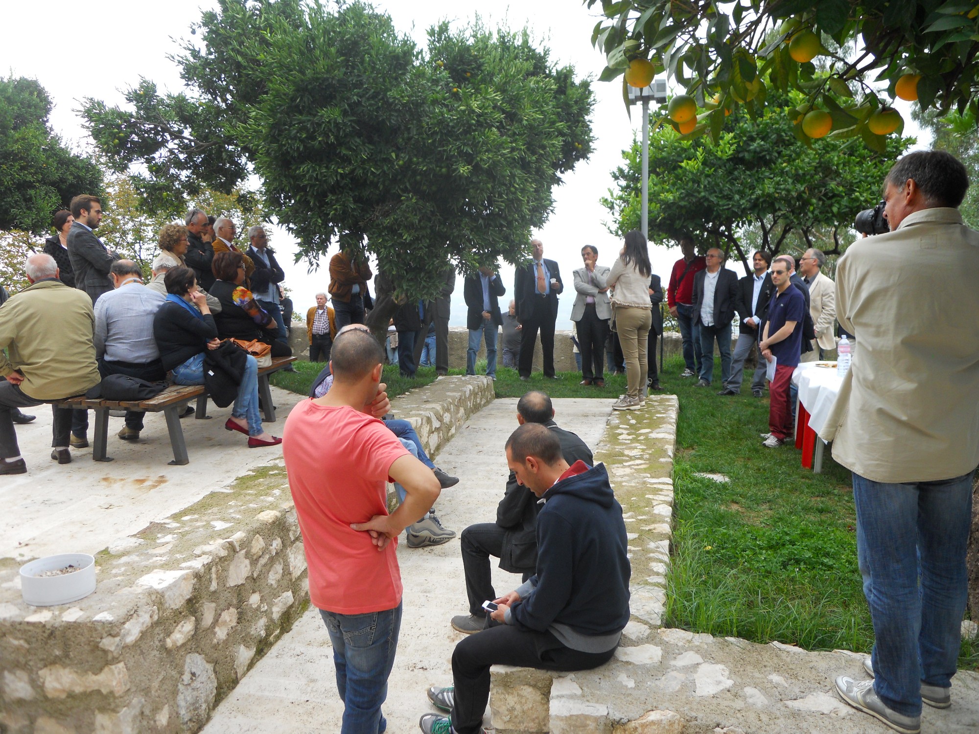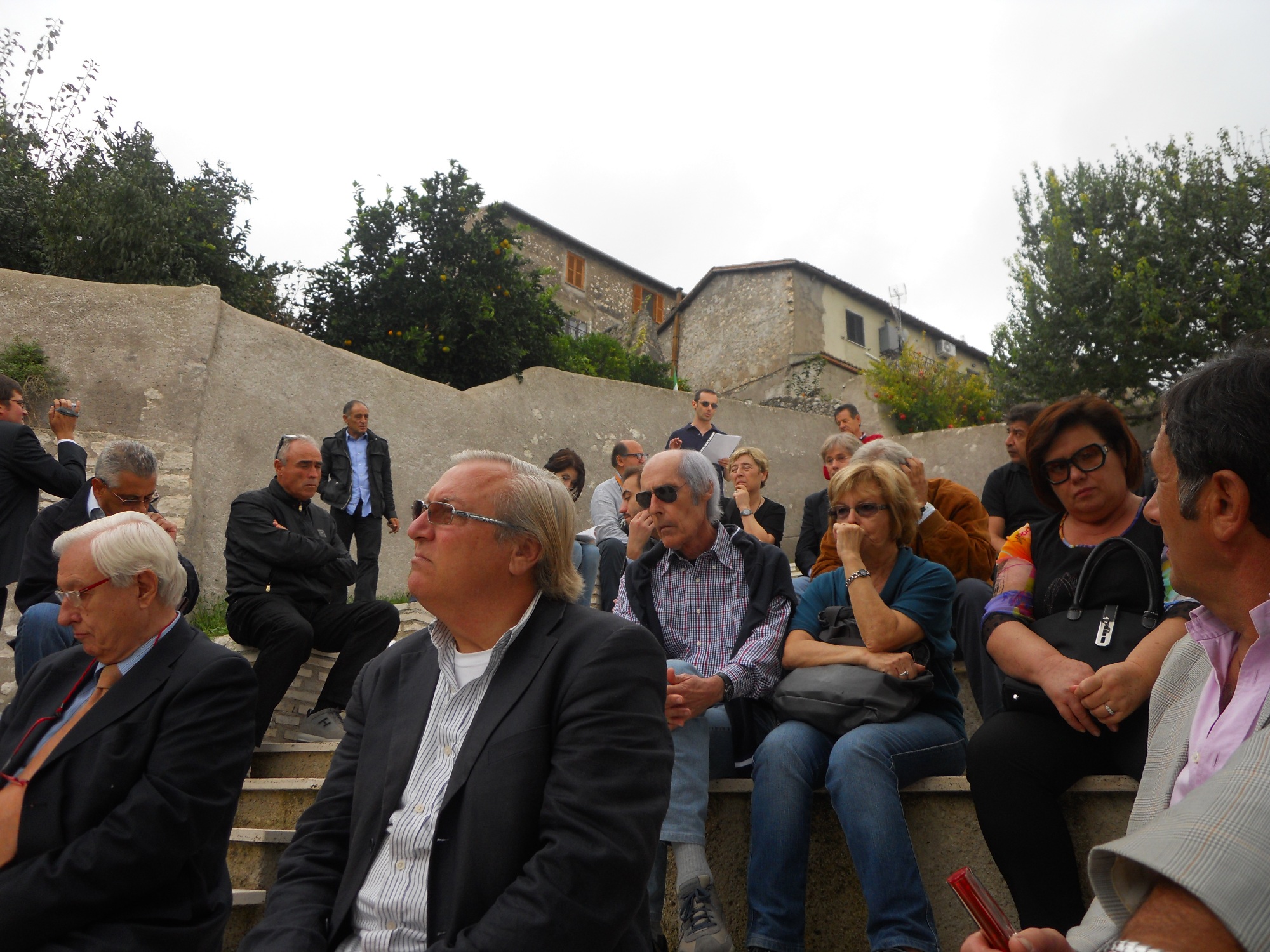 L’Agro Pontino visto dal centro di Sermoneta (spicca in altezza sulla destra la Torre Pontina). Una parte della comunità di Sermoneta discute nella piazza centrale (30-06-2013)